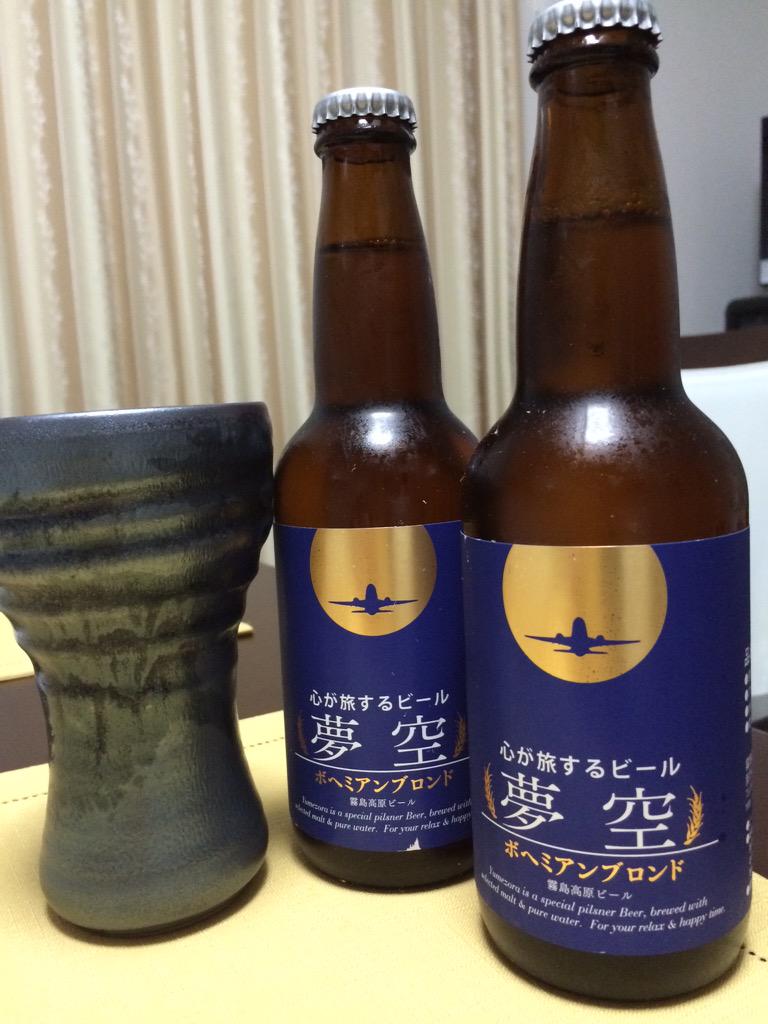 ・今夜はマイレージで購入の霧島高原ビール、新燃岳の火山灰を使用したビアマグ(天降川焼=あもりがわやき)で。チェコ麦芽を使用、コク・キレ、喉ごし爽やか